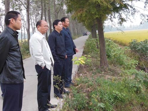 圖為市水利局局長(zhǎng)胡經(jīng)緯(左二)陪同市委辦主任李向前(右二)調(diào)研渠道清於工作