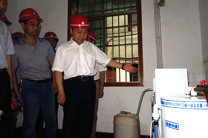 李國英副部長一行在沅江市共華鎮(zhèn)白沙集中供水工程查看水廠水質(zhì)化驗(yàn)情況